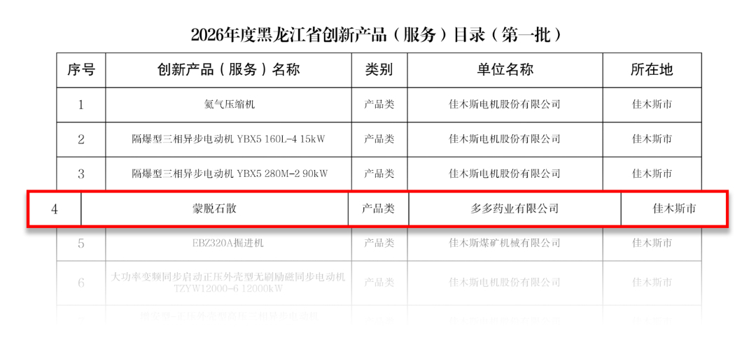 黑龍江省創新産(chǎn)品(服務)目錄評選,是黑龍江省爲深入實施創新驅動發展戰略,鼓勵和支持企業開展關鍵核心技術攻關,加速創新成果轉化與市場應用而設立的重要舉措。作爲區域内醫藥産(chǎn)業的重點企業,多多藥業憑借蒙脫石散的技術創新優勢成功上榜,進一步鞏固和提升瞭(le)公司在行業内的核心競争力與品牌影響力。