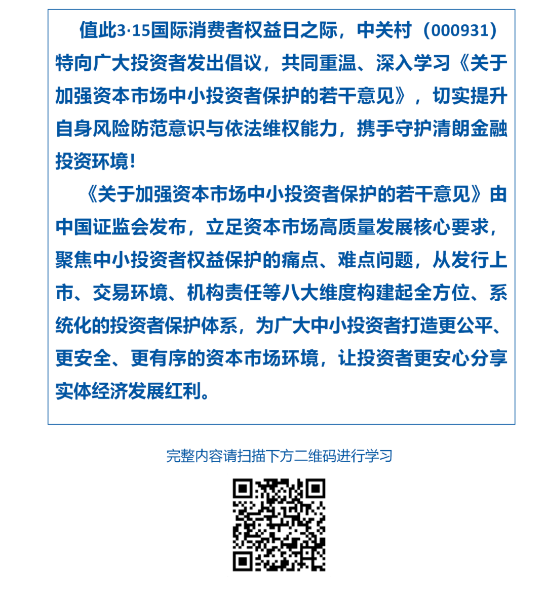 3·15投資者保護教育宣傳活動|重溫學習《關於加強資本市場中小投資者保護的若幹意見》